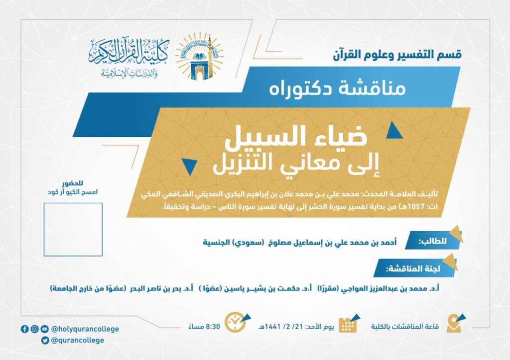 تصميم مناقشة لدكتوراة لكلية القران