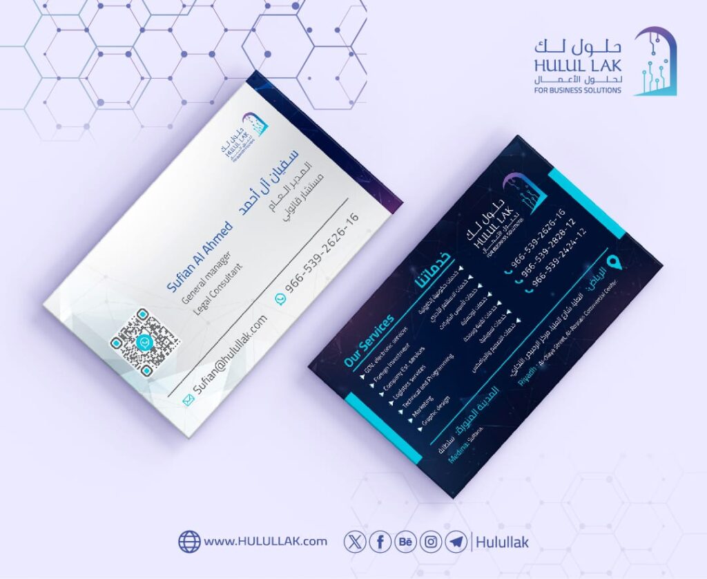 تصميم بطاقة شخصية لسفيان آل أحمد المدير العام والمستشار القانوني لحلول لك